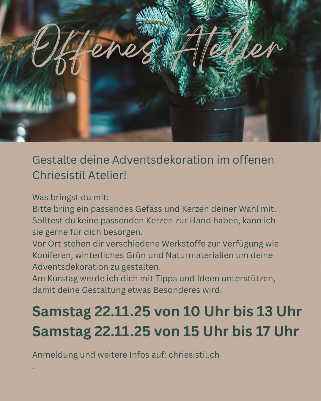 Workshop Neu: Offenes Chriesistiel Atelier!