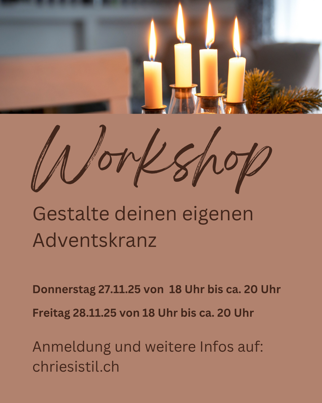 Kosten : CHF 205.- pro Person inkl. Material, Kerzen und Werkstoff